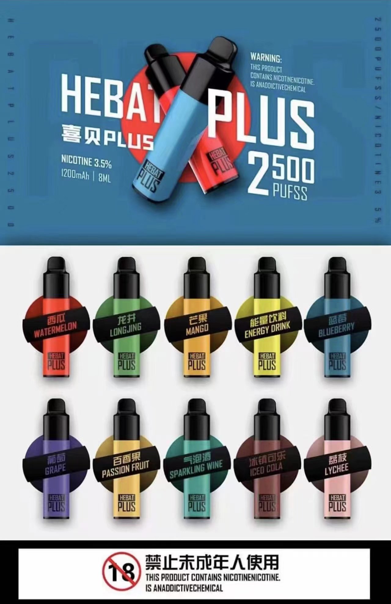 | 煙油成分 | 甘油、丙二醇、香精、有機尼古丁 |